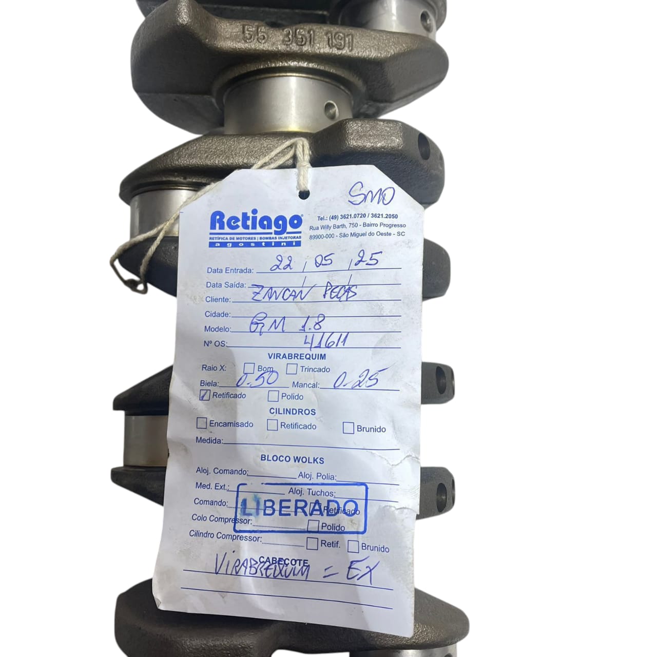 Virabrequim Chevrolet Corsa Montana1.8 Mancal 0.25 Biela 0.50 Retificado